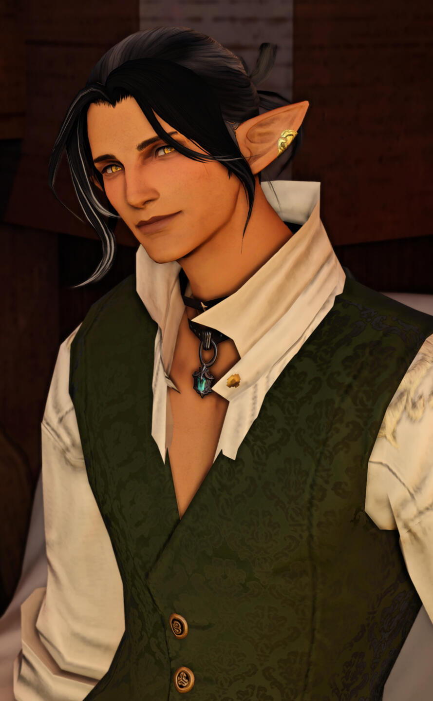 Second son of the House Spencer, Liam grew up knowing that the expectations of him aligned less with succession and more with betterment of the House name. Born Liam Adélard Bérenger de Spencer, his parents spared little expense on both their sons’ educations and upbringings.Unfortunately, an expensive education is still no match for real-world experience. During an outing as a squire alongside his knighted brother, the small group was ambushed by a dragon and Liam was severely injured in the resulting fight. Rushed back to the safety of the walls of Ishgard, the chirurgeon could not save his left limbs and thus ended young Liam’s stint as a squire.As one versed in etiquette and the teachings of Halone, Liam quietly became a member of the Church after his life-saving surgery and prosthetic limb replacements, and worked as a clerk and then a rector for several years, dutifully finding small joys in balanced ledgers and books filled with black ink. The upset of Thordan’s treachery has seen his trust in the mortal members of the Church severely depleted, but his faith in The Fury unshaken. He traded in his vestments for more secular work, and is now an Auditor for the city-state.He has recently married Lady Maeva de Faepoix, in what was not concealed as an arranged marriage between Houses Faepoix and Spencer.